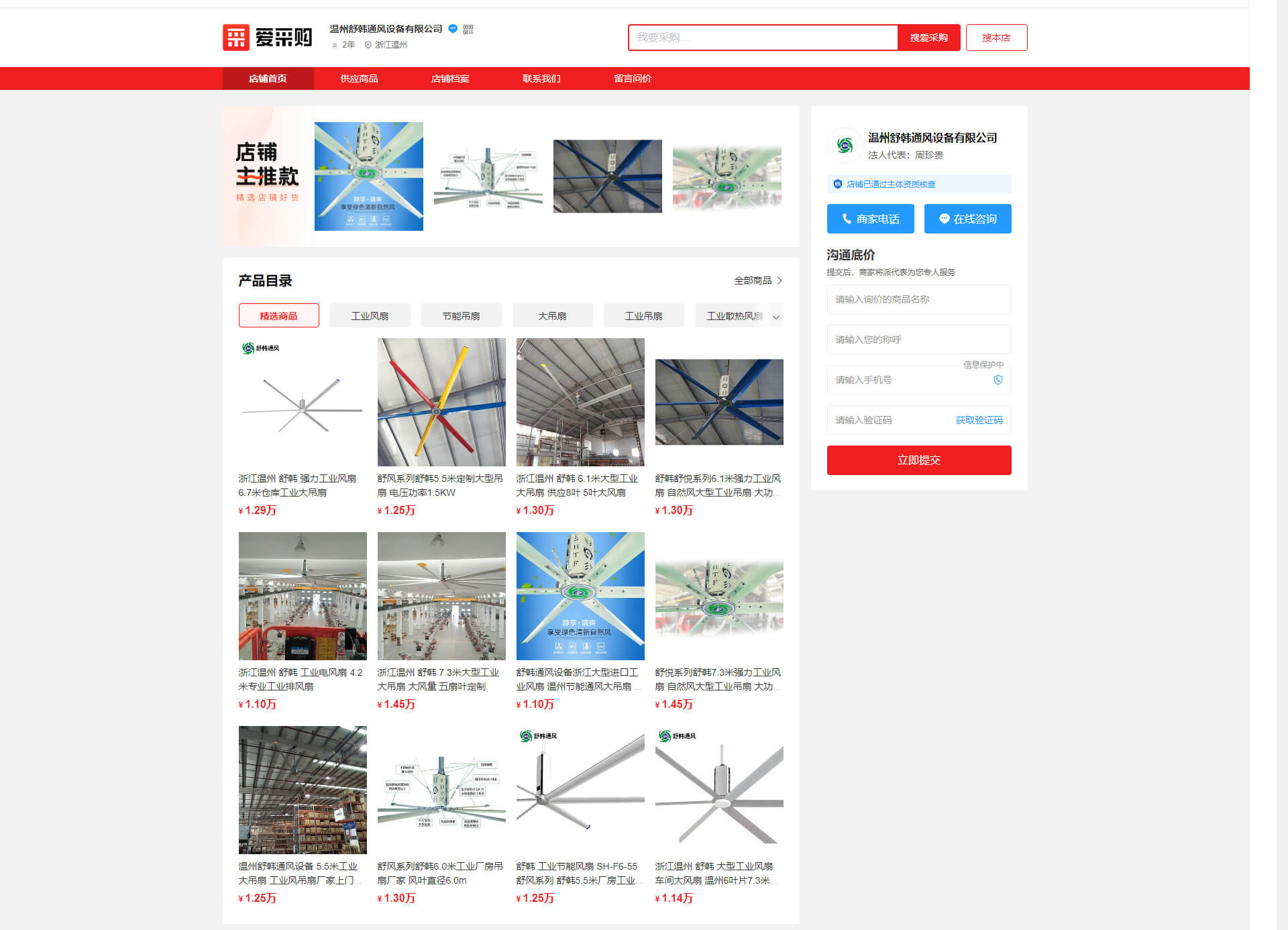 關(guān)鍵詞:主要服務(wù)為:提供企業(yè)百度愛采購服務(wù),店鋪搭建,店鋪產(chǎn)品上傳,店鋪維護(hù),客戶主營節(jié)能吊扇,工業(yè)大吊扇,工業(yè)吊扇