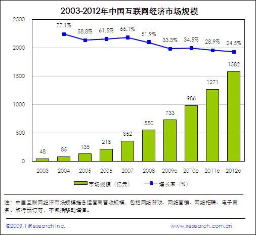 2008年互聯(lián)網(wǎng)經(jīng)濟(jì)市場(chǎng)規(guī)模達(dá)550億元,年度增長(zhǎng)放緩至51.9%