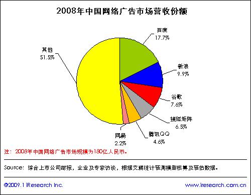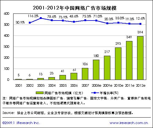 2008年網(wǎng)絡(luò)廣告市場(chǎng)規(guī)模達(dá)180億元,年度增長(zhǎng)達(dá)71.0%