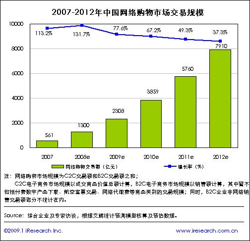 08年網(wǎng)購(gòu)交易規(guī)模1300億元,年增長(zhǎng)131.7%