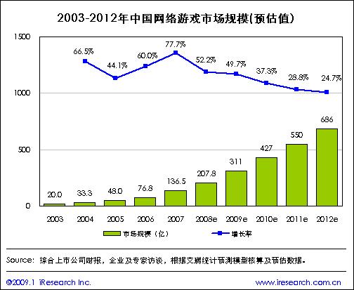 2008年中國(guó)網(wǎng)絡(luò)游戲市場(chǎng)規(guī)模207.8億,同比增長(zhǎng)52.2%