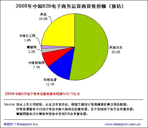 阿里巴巴占據(jù)52.6%的市場(chǎng)份額,市場(chǎng)份額較07年略有上升