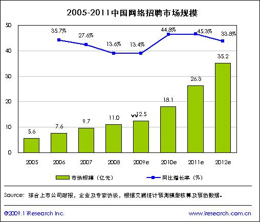 ·受經(jīng)濟(jì)危機(jī)影響,08年網(wǎng)絡(luò)招聘市場(chǎng)增速放緩,09年上半年為低谷