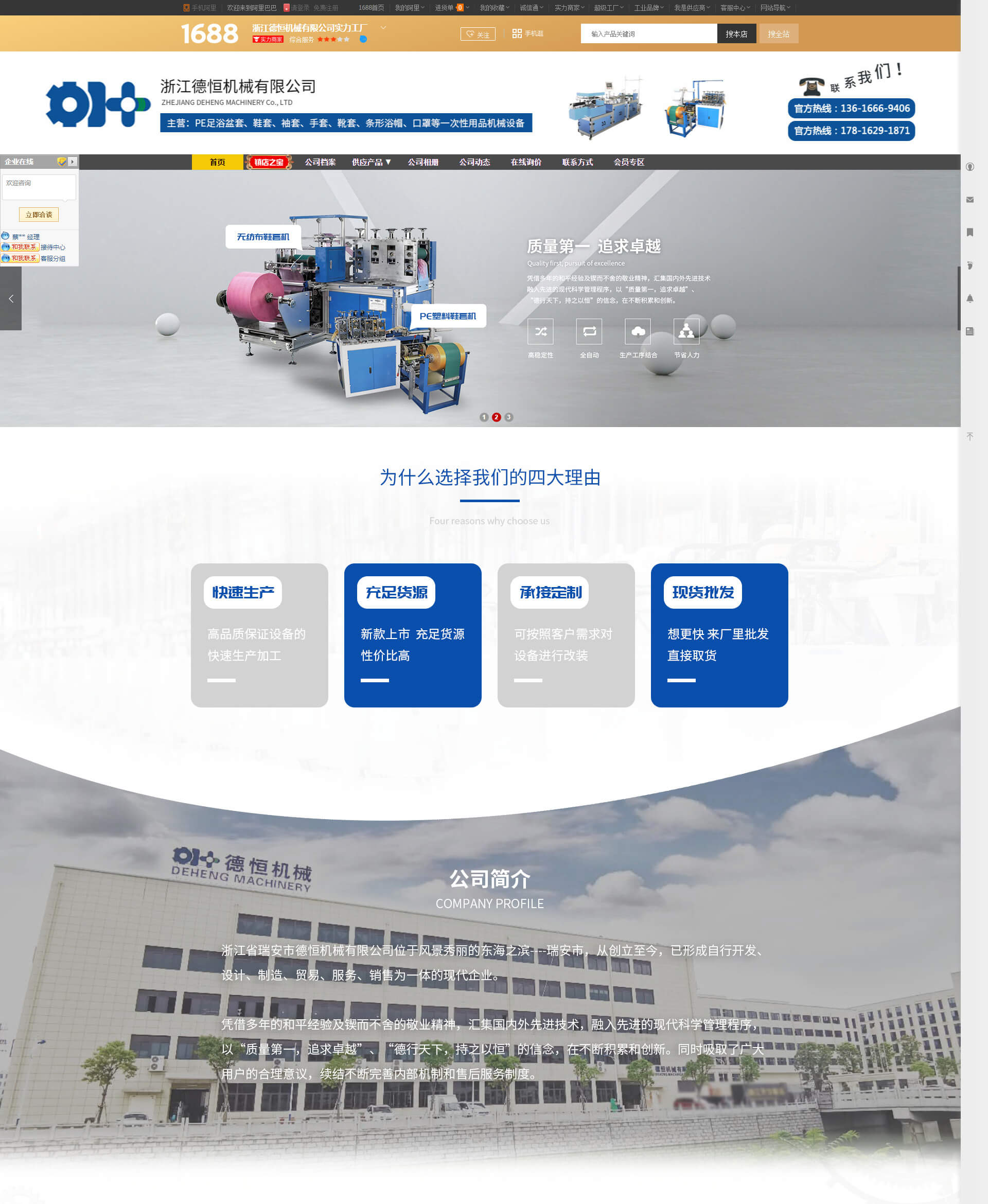 浙江德恒機(jī)械有限公司位于風(fēng)景秀麗的東海之濱----瑞安市,從創(chuàng)立至今,已形成自行開發(fā)、設(shè)計(jì)、制造、貿(mào)易、服務(wù)、銷售為一體的現(xiàn)代企業(yè)。