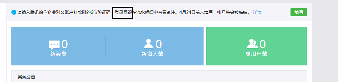 請通過銀行柜臺或網(wǎng)銀查詢該對公賬戶的收支明細(xì)單,在流水明細(xì)中查看備注,騰訊將向該賬戶匯入一分錢,并附上6位數(shù)字的備注驗(yàn)證碼。